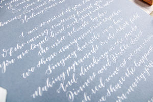 Having a special poem or song created in beautiful calligraphy is a keepsake that can be displayed in your home forever.